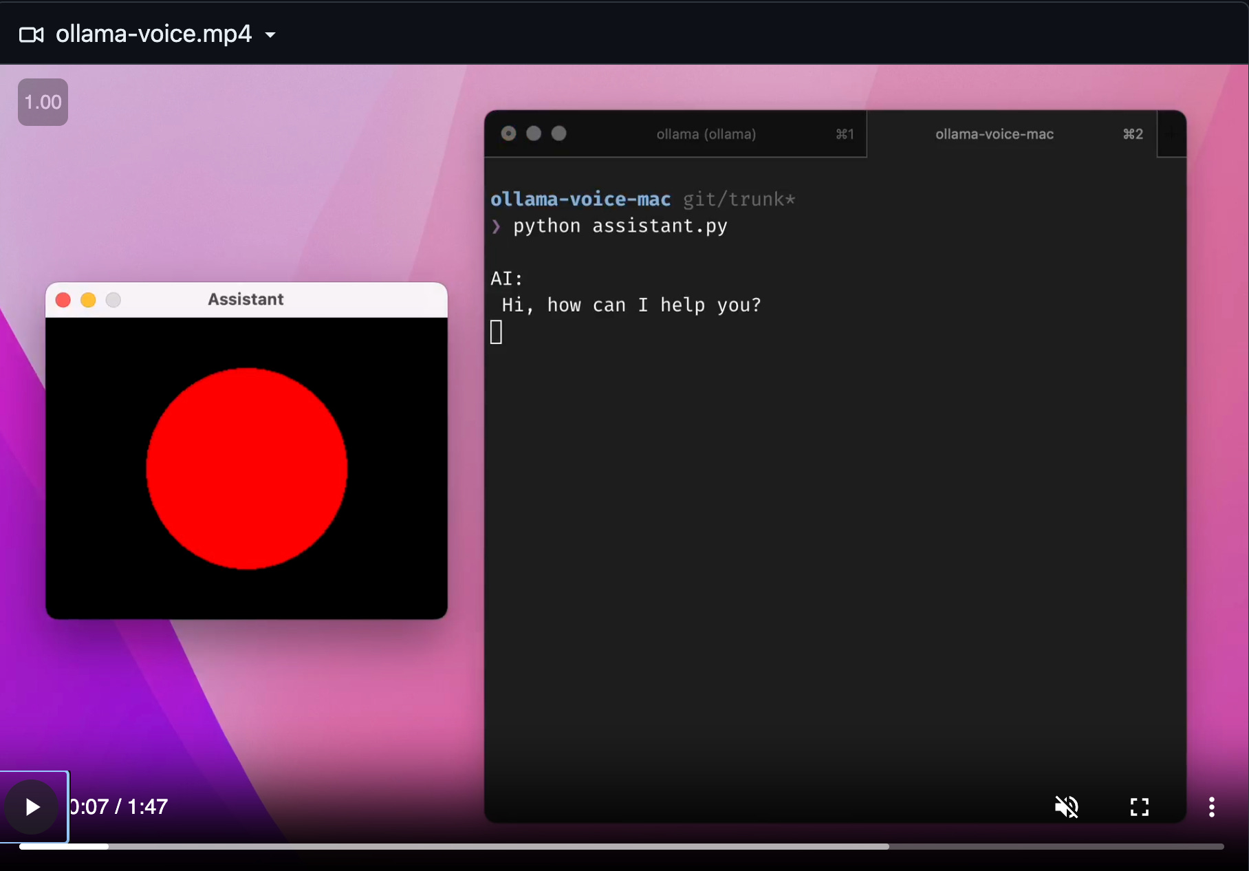 A completely offline voice assistant using Mistral 7b via Ollama and Whisper speech recognition models
