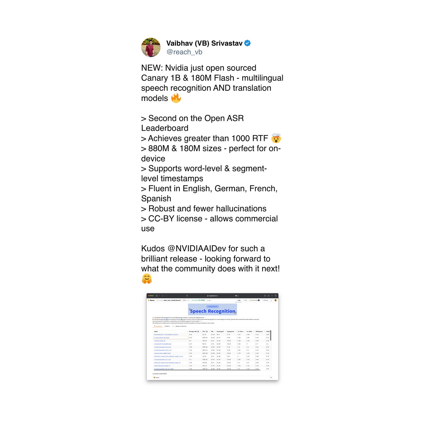 NVIDIA open sources Canary AI models for multilingual speech recognition and translation (Medium)