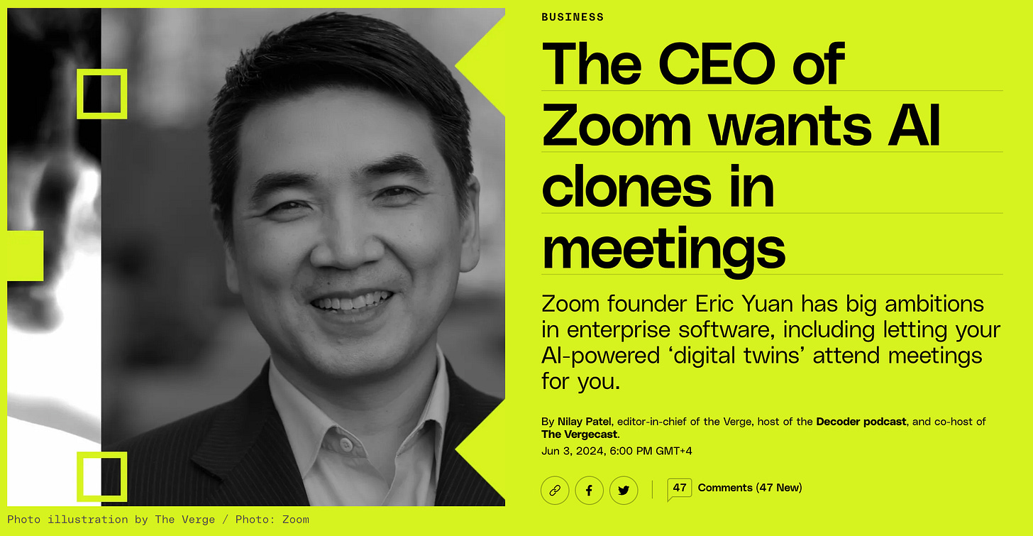 The CEO of Zoom wants AI clones in meetings.